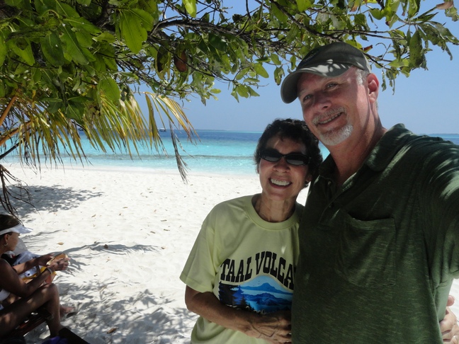 To get away from the crowd we took a boat out to one of the uninhabited islands. From this perspective our cruise ship dwarfs the city of Malé.